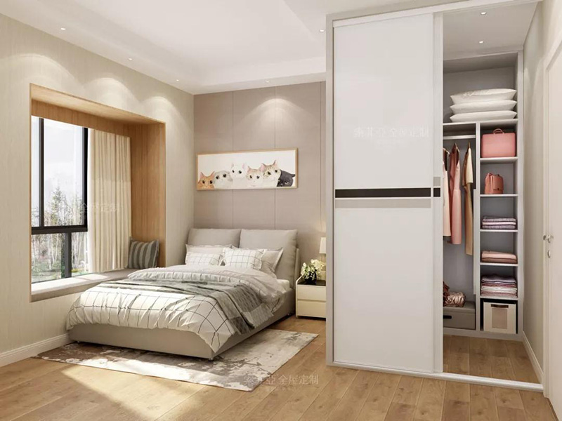 當然了,假如臥室恰好有飄窗,那么利用起來就更方便了。搭配立櫃和飄窗櫃化身收納寶地。