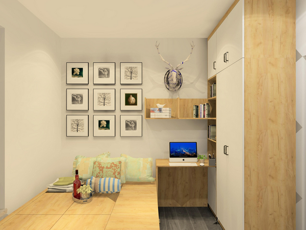 2、在大一點的房子當中,如果你想將那個大空間重新規劃一下,制造一個小的功能區,比如茶室、吧臺、書房等,那不妨可以考慮以榻榻米地臺形式做隔斷來劃分空間。相比其他的隔斷方法來說,這種方法簡單實用,不會影響空間的通暢性,也不會影響室內的採光,性價比也很高。