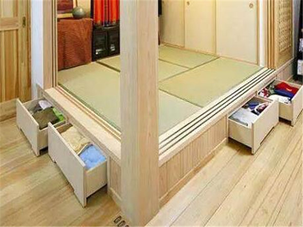 日式榻榻米的下方通常為掏空設計,被做成一個大的收納空間,我們可以將一些平時不常用的東西放置進去,同時日式榻榻米功能豐富,可替代床鋪、桌子、椅子、減少家具的堆積,讓室內空間變得更加寬敞。