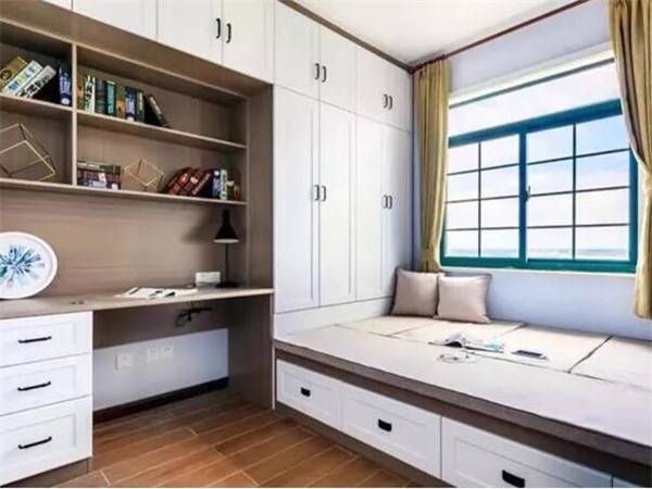 如果你希望安裝榻榻米的這間房既可以當臥房又可以當書房,可以選擇在榻榻米床頭或者床尾安裝衣櫃、書架和書桌,這樣不僅可以收納衣物,也可以收納書架用來辦公,一舉多得。