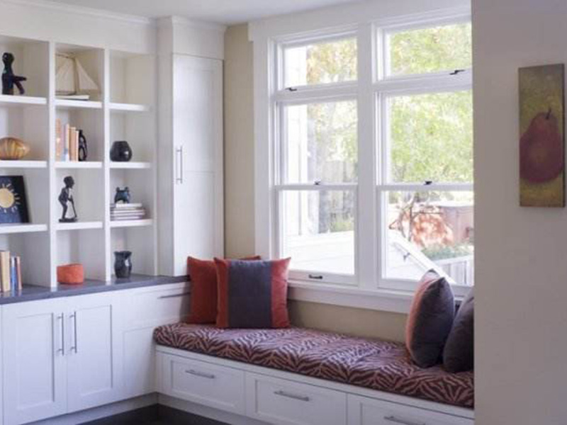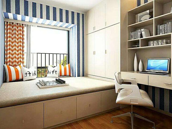 如果是小戶型,在設計飄窗榻榻米時可以充分利用底部空間,將其設計成抽屜或隔板,增加收納空間。飄窗兩鍘的部分墻面可設置成置物架,放置收納品、書籍或工藝品,不僅美觀還非常的實用。