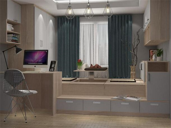 另外,地臺儲物的方式主要有側開式(地臺側面設門)、抽拉式(地臺側面設抽屜)、上掀式(地臺頂板可上掀)幾種。這些方式在榻榻米地臺上都可以使用,但比較推薦前兩種,這樣取物時不用將榻榻米掀開。但如果要采取上掀式,則可以在頂板上設置多個門,不但開啟輕松,取物比較方便,也不會影響地臺整體的設計。而榻榻米只要分割成與門相同的大小擺放,不影響開門即可。