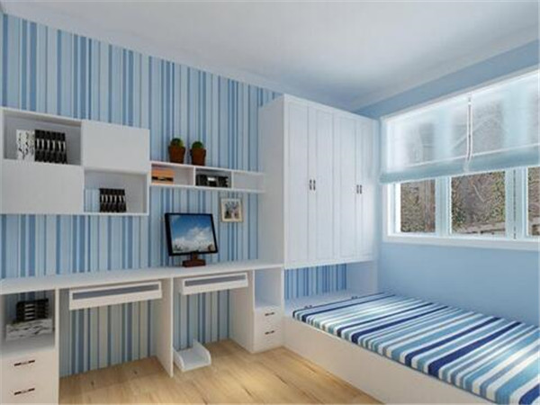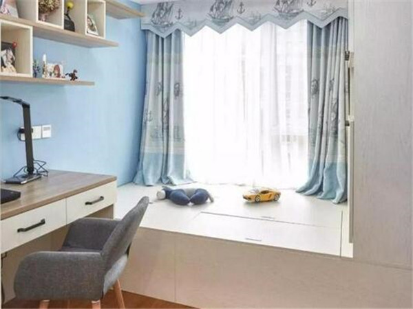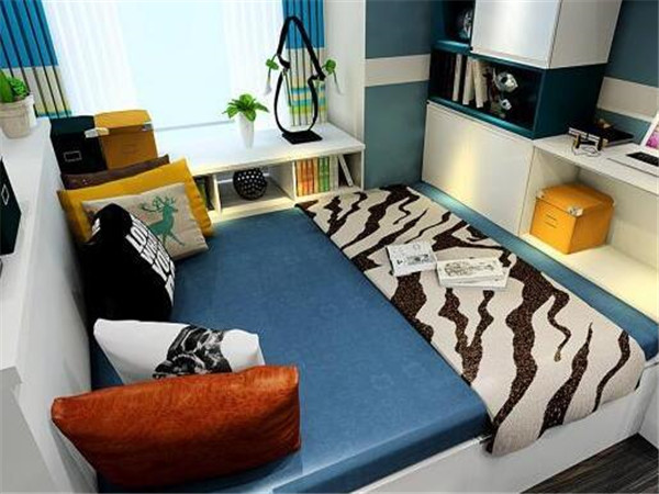 ,榻榻米的造型設計可以滿足主人的全部需求,不管是學習還是睡眠,都是很好的,榻榻米床裝潢效果圖可以讓空間看上去更加地飽滿,功能分區也是非常明確的,白色櫃體造型搭配藍色榻榻米軟墊很自然。