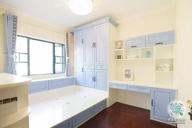都說藍色能提高睡眠質量,一方面是藍色的寧神作用;另一方面,我想這淡淡的近似天空的藍,睡在里面的人,應該有種“以天為被”的感覺吧~