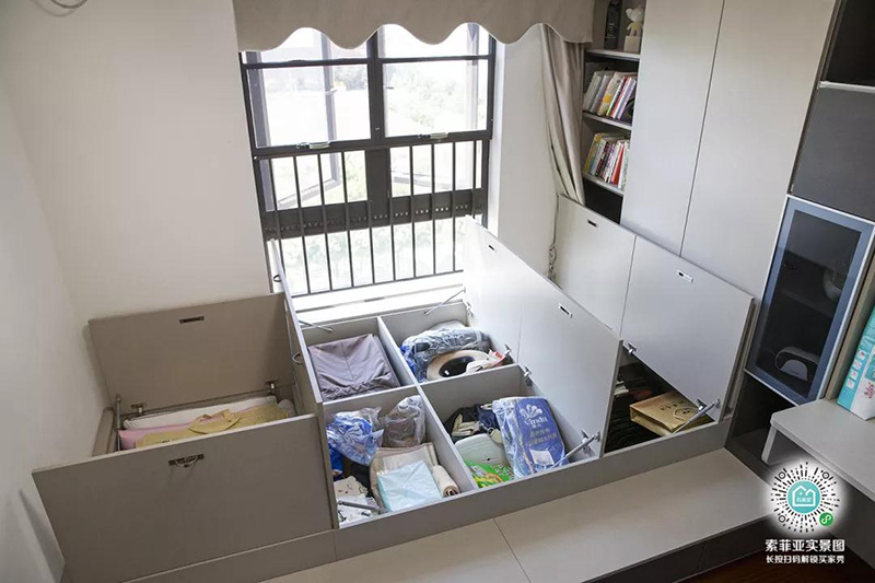對于包含睡眠、休閑、會客、收納多功能一體的榻榻米來說,耐臟其實很重要,裝一個胡桃木色榻榻米,住十年也不會舊。