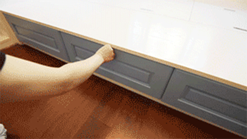 底部的按彈式抽屜櫃,平時取物很方便;無拉手設計,上下床不怕磕碰。