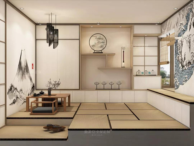 日式榻榻米比較注重空間整體的單一原木感,營造安寧、舒適的空間氛圍。