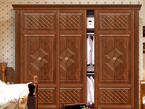 如果衣櫃移門采用實木材質打造,這種這衣櫃西讓人感覺非常典雅,價格也相對較高。它的門框也是采用實木制作而成,門芯為中密度板貼實木皮,在制作過程中通常會在實木外觀上做凹凸造型,然后進行噴漆處理,這樣不僅能保持木材的顏色而且非常精美,帶給人們強烈的視覺沖擊。