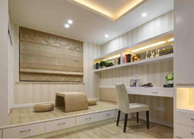 2、榻榻米地臺設計的高度一般在15cm-20cm左右,如要設計升降桌的話高度可按照個人需求來設置。
