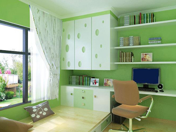 2.由于小臥室的裝潢面積較小,所以在選擇墻面裝潢色調的時候應盡量選擇較為明亮的色調,明亮的裝潢色調不僅能增加小臥室的採光性,而且還能帶給人一種擴大臥室空間面積的視覺效果。