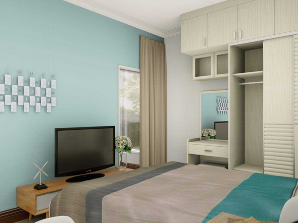 1.根據臥室環境來搭配。當然,簡潔是我們追求的。如果臥室墻面是石灰白,臥室衣櫃可以和地板相近的色系,或跟床相近的色系。