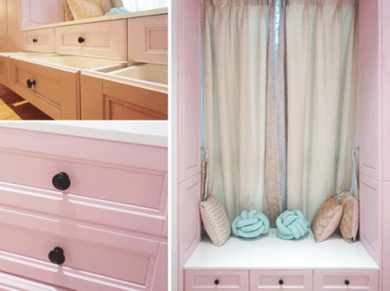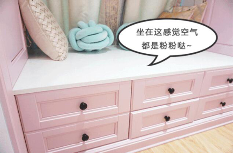 @Miss Tao雖然沒有做滿屋的榻榻米,但她在主臥窗邊做了一個超夢幻的飄窗榻榻米,甜炸了的晶櫻粉花色,成功俘獲了老夫的少女心。