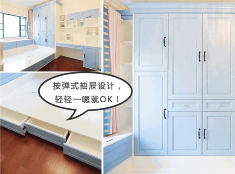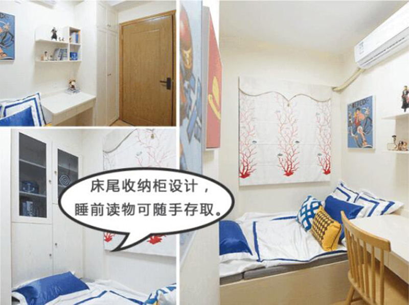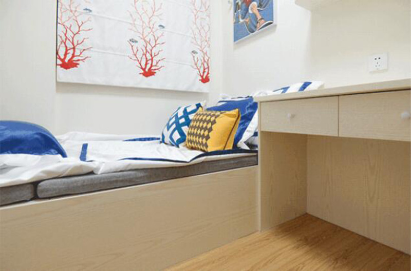 @路飛的房間是爸爸親手設計的,榻榻米、書房、衣櫃均選擇白色木紋,明亮清爽,房間絲毫不顯拘束。配上藍白色的海賊王動漫軟裝,在同學眼中@路飛就是個酷男孩!