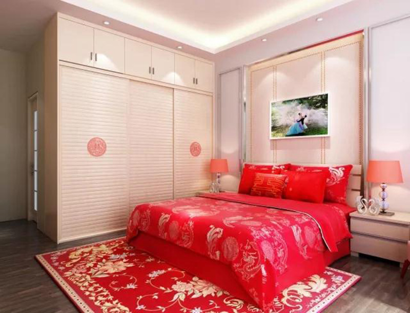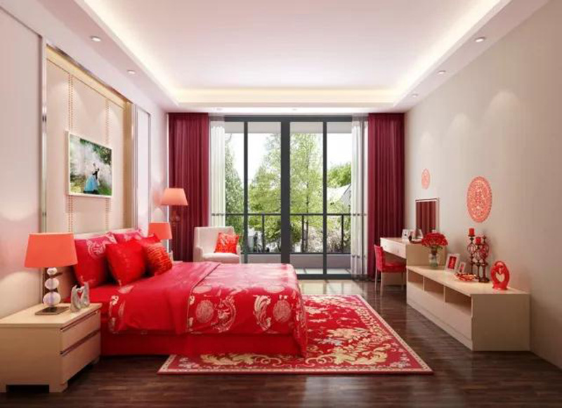 在中國的傳統里,婚姻都是和大紅色聯系在一起的。像是紅被子、紅喜字、紅地毯、紅枕頭等等。但在現代設計里,尤其是家居設計,很難hold住這樣的大紅色。