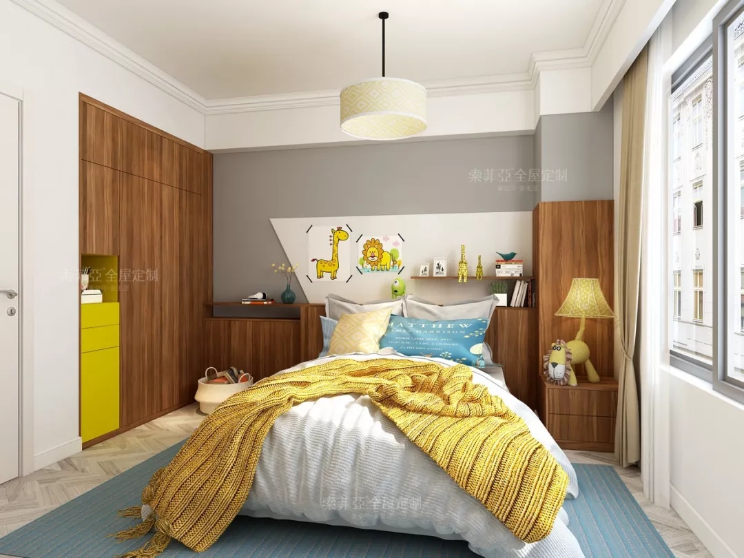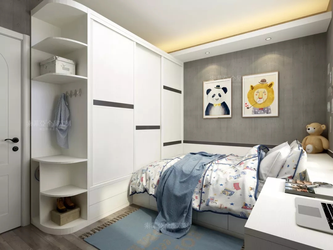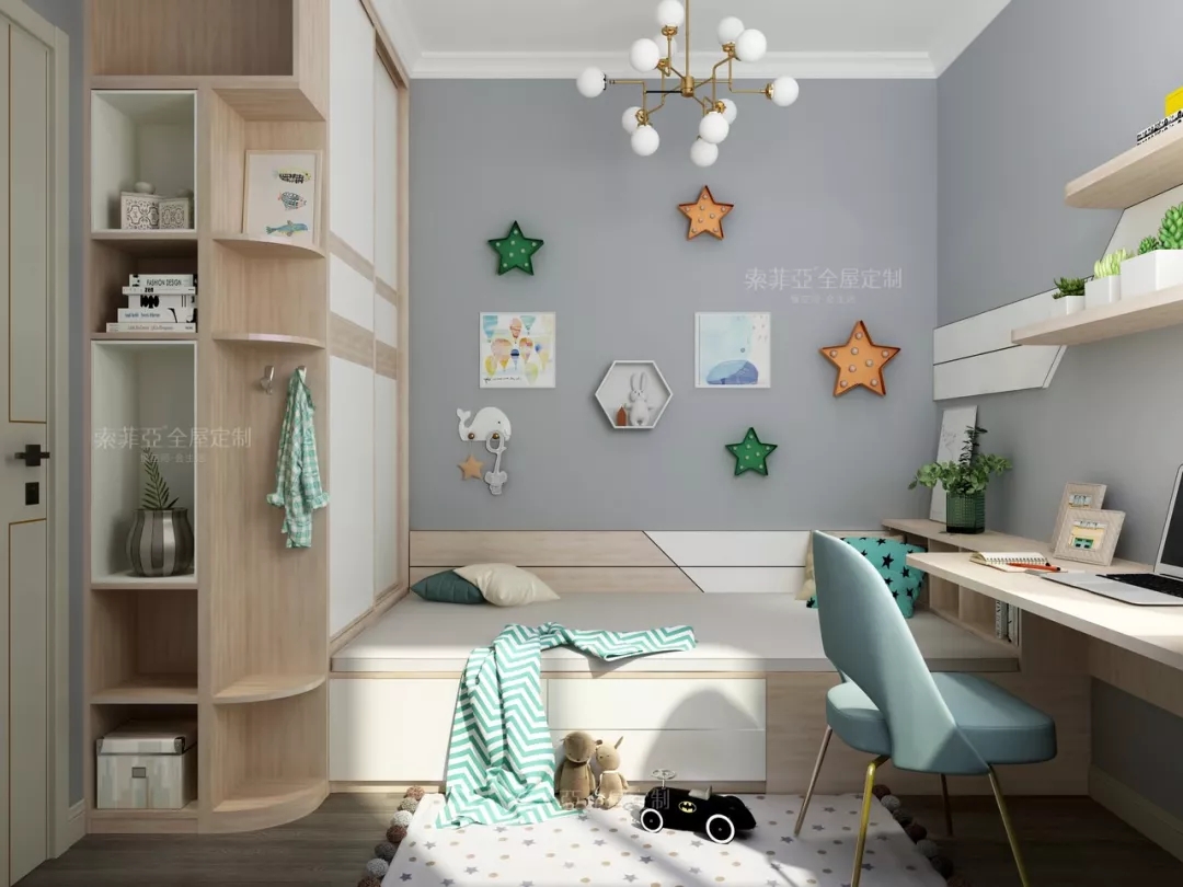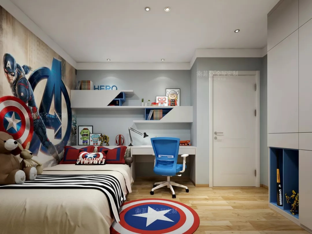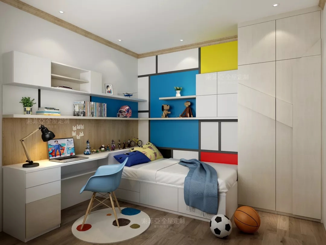 搭配色彩豐富的軟裝,如掛件、動漫四件套等,若以后孩子不喜歡了,也可隨時換掉。