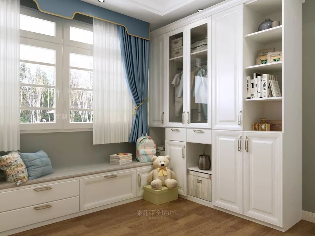 建議墻體櫃體顏色以素雅為主,如使用淺藍、淺黃、淺灰等中性色。