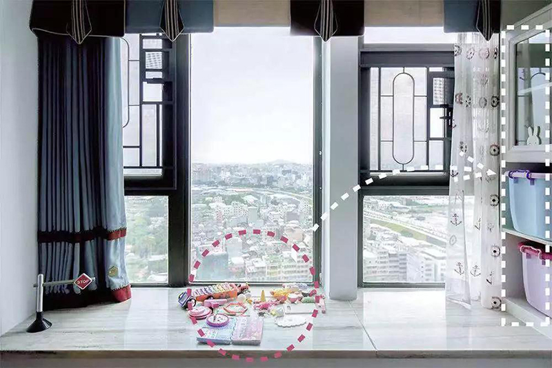 @Catherine把家里的陽臺全封起來,並客製化了榻榻米飄窗櫃。孩子在玩耍,大人在旁邊看會書。玩好了直接把玩具放進飄窗櫃里,一點都沒把客廳弄亂。