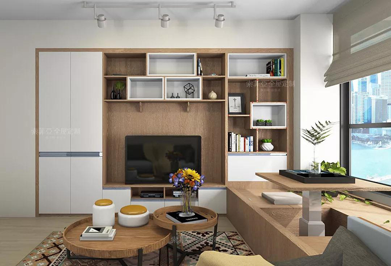 利用客廳飄窗位打造成的榻榻米,不僅盡收窗外風景,而且讓小戶型客廳的收納能力大大提高。