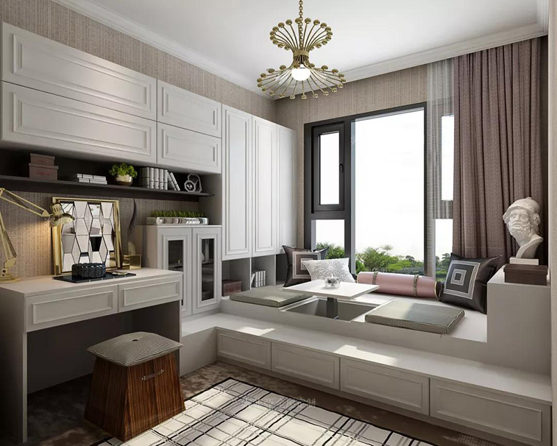 假如在榻榻米的外沿搭配工作臺組合使用,那么一個房間就能變成“臥室+書房+儲物房”,一房三用不是夢。