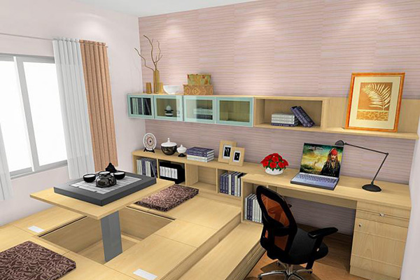 現在很多人家里有客人來了都喜歡泡茶來接待,在家中布置一個茶室,也就成了業主們裝潢的一種品味體現。但是家也不會天天有客人過來,在家里布置上一個茶室就顯得有點浪費了。榻榻米升降臺的出現,使得一個房間可以一室多用,也把榻榻米家具的人氣推向了一個高峰。