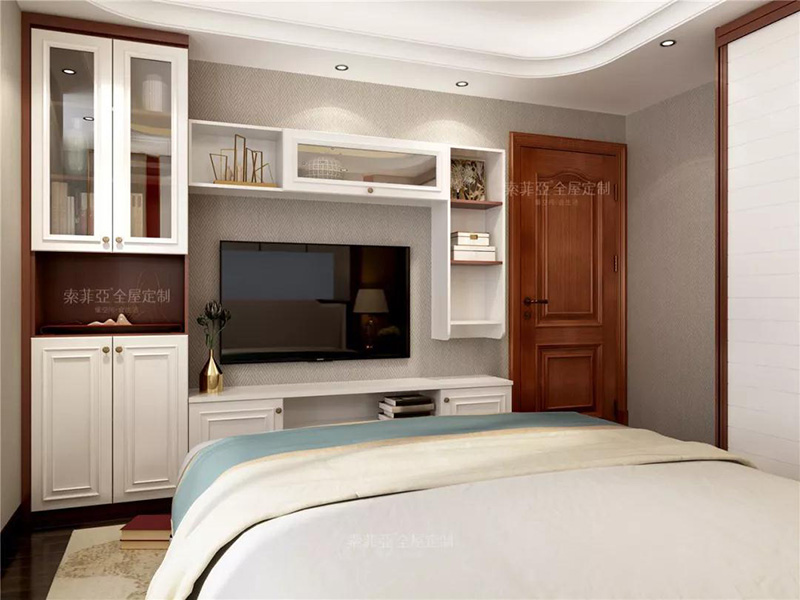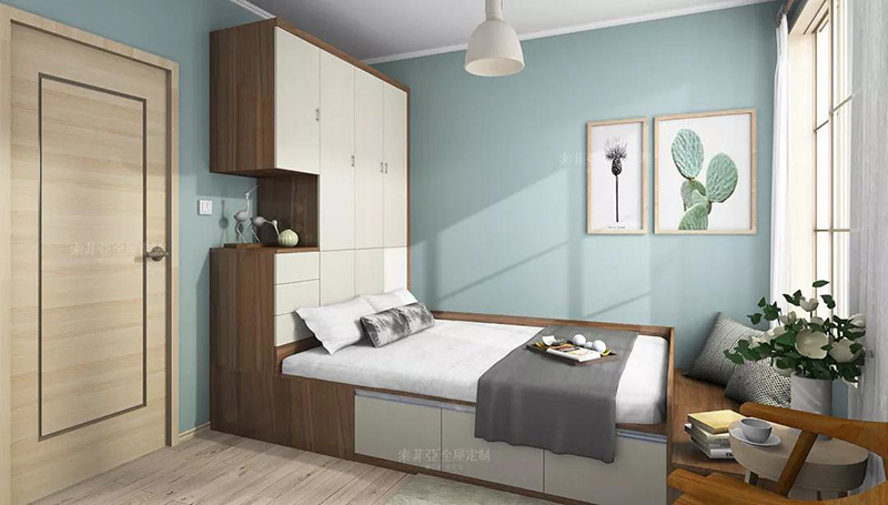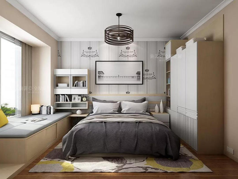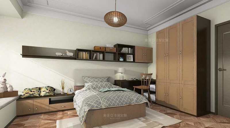 以暖色調為配色中心,搭配白色衣櫃、護墻板,空間更加輕快明亮。