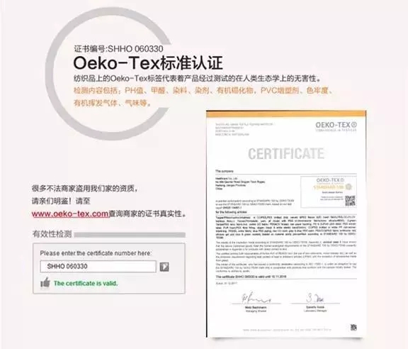 經典客製化薄墊類產品通過瑞士紡織品生態認證,並取得“Oeko-Tex標準認證”(這項認證表明產品從原料到生產過程在人類生態學上的無害性),讓消費者放心使用。