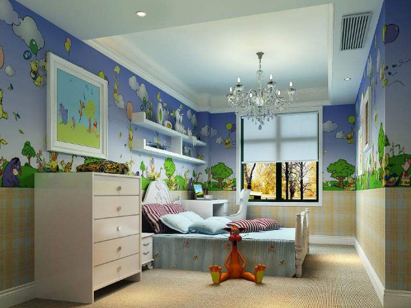 1、覺得臥室的墻面暖色太暖,冷色太冷,刷什麼顏色的涂料都不合適?干脆就不刷了,最簡單的蠟筆就能畫出一幅想象力十足的畫,什麼?覺得蠟筆畫像小孩子的涂鴉?只要畫得好看,涂鴉也能高大上。