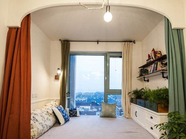 2.飄窗處做一個小型的榻榻米,閑暇時光坐在窗臺看車水馬龍,云卷云舒。
