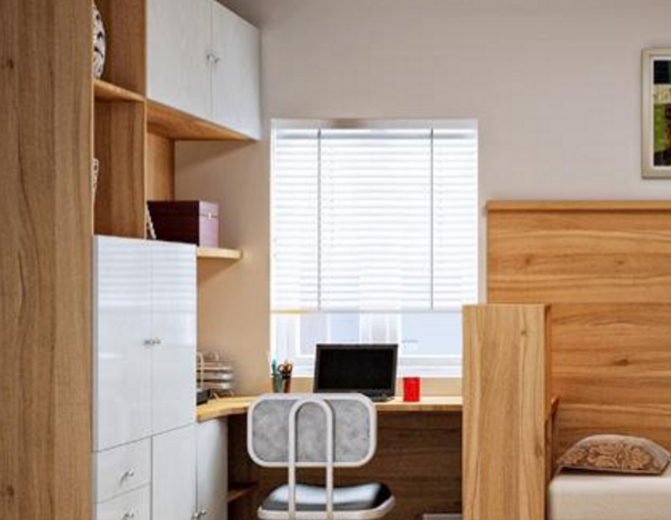 2、將書桌和書櫃組合布置在室內,可以使室內環境更加協調,帶來干凈大方的效果。在實際使用條件下,使室內更加美觀。