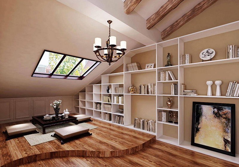 ▲將小閣樓打造成書房也是一個不錯的選擇,利用抬高設計做成榻榻米區域,不會顯得擁擠,反而寬敞明亮。