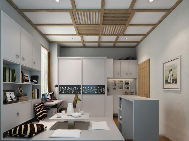 衣櫃、飄窗櫃和可升降榻榻米結合在一起,可以在這里安靜地看書、愜意地會客,有人留宿還可以是一間舒適的客房。
