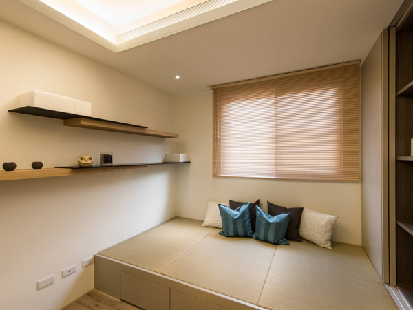 日式榻榻米的下方通常為掏空設計,被做成一個大的收納空間,我們可以將一些平時不常用的東西放置進去,同時日式榻榻米功能豐富,可替代床鋪、桌子、椅子、減少家具的堆積,讓室內空間變得更加寬敞。