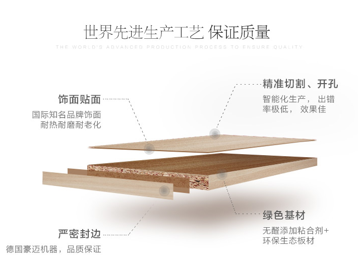 經典無甲醛添加板材,專為敏感人群,如老人,小孩,準媽媽等貼心打造。所謂無甲醛添加是指是在板材壓貼過程中采用無醛生態粘合劑合成的一種環保板材,具有較強的穩定性、防潮性。