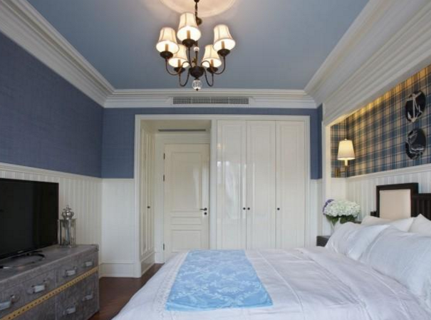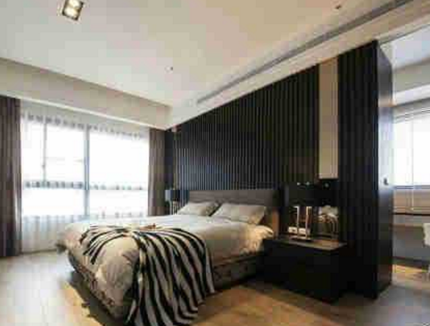 1、窗子多的臥室,臥室四周都有窗,可以在床的一側制作到頂衣櫃做隔斷,衣櫃采用雙面開門的設計會比較方便取放衣物。