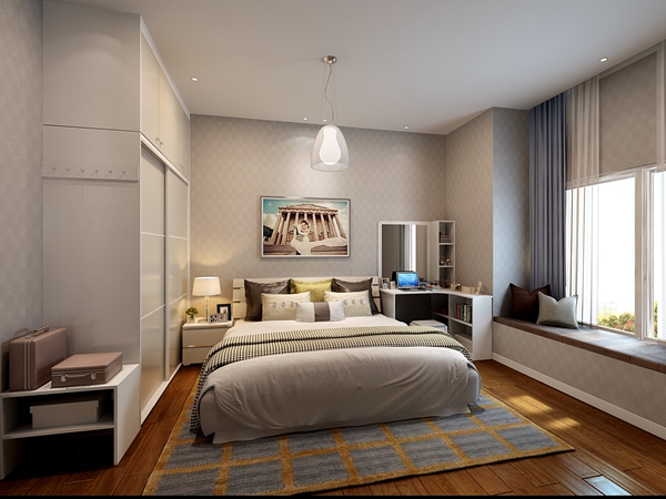 90后臥室裝潢效果圖:很簡約有范的臥室裝潢,米白色的床適合搭配黑灰色的家具空間,不想要現代風格?簡歐自然也是信手拈來。
