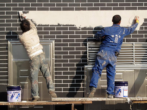 噴涂施工時,應均勻噴涂,不得漏噴、虛噴或出漿掛流。刷涂、滾涂施工時,刷、滾方向長短應一致。噴刷涂料不得過厚,如噴刷二遍時,應在第一遍充分干燥后再進行第二遍。滾劑型冷料二遍間隔為24小時,操作時不宜往復多次涂刷。使用乳液型涂料時,可在基層滿刷一遍1:3稀釋的107膠水或者其他同類乳液水,減少對粉塵的隔離作用,增加涂料與基層的粘結力。涂料的接茬必須在分格縫或陰陽角處,不能任意留茬。