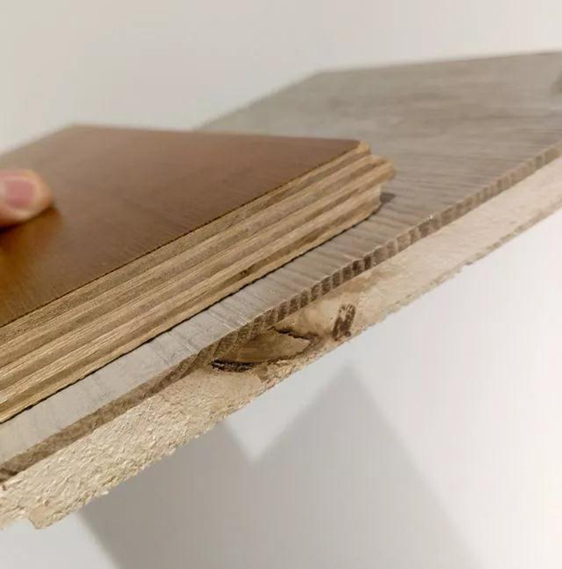 人們總愛變著法子來與大自然共生,家里沒點自然的東西,生活便冷冰冰的,所以復合地板也努力向原木地板靠近。左為實木多層、右為實木三層;實木多層每層結構更薄更穩定,實木三層的板芯就帶有結痂和開裂。圖源:住范兒