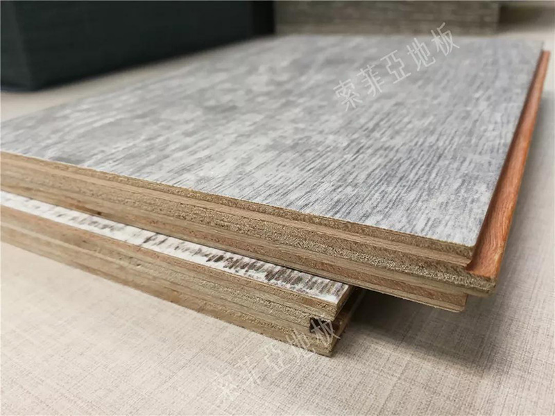 三層地板由實木條拼板和上下兩層單板壓制而成,穩定性比原木強,但比不上多層。